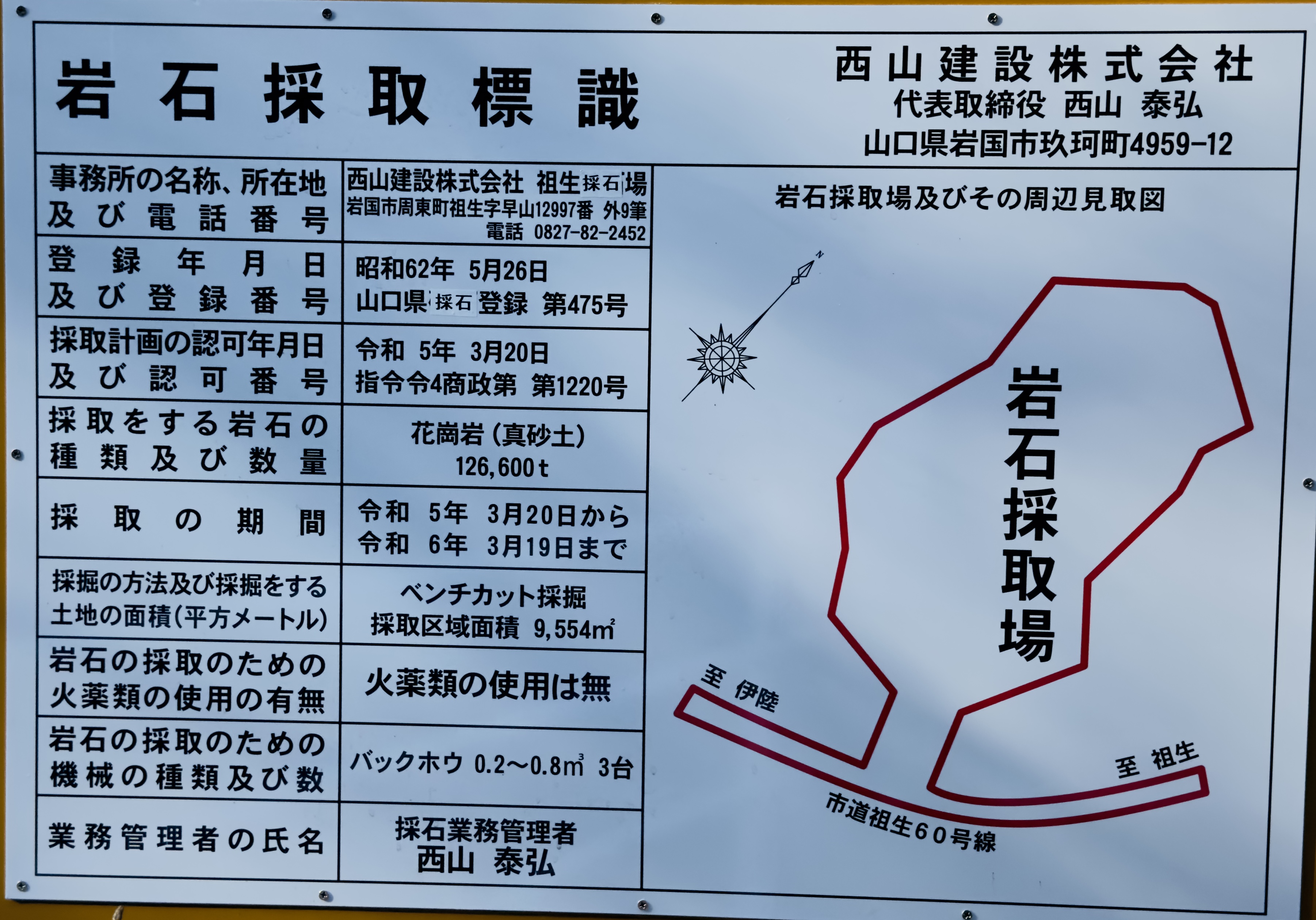 昭和62年5月26日 山口県砕石登録 第475号 |